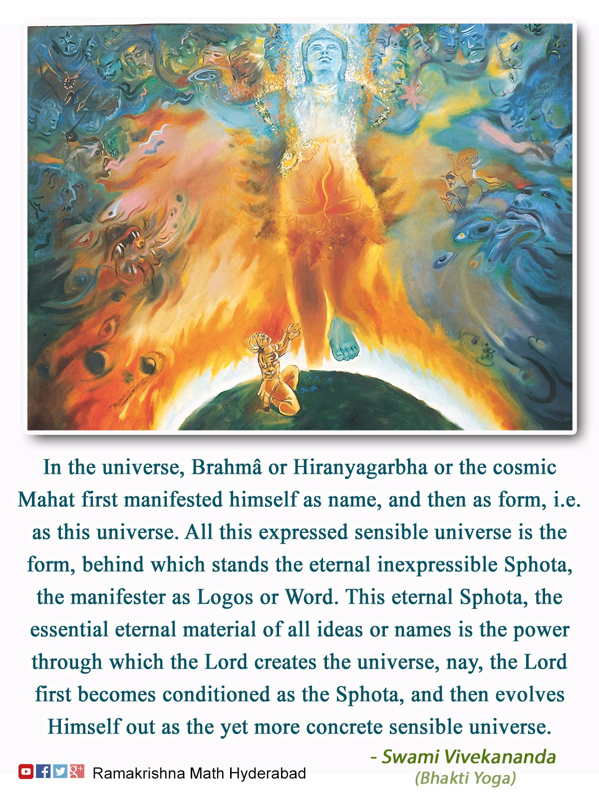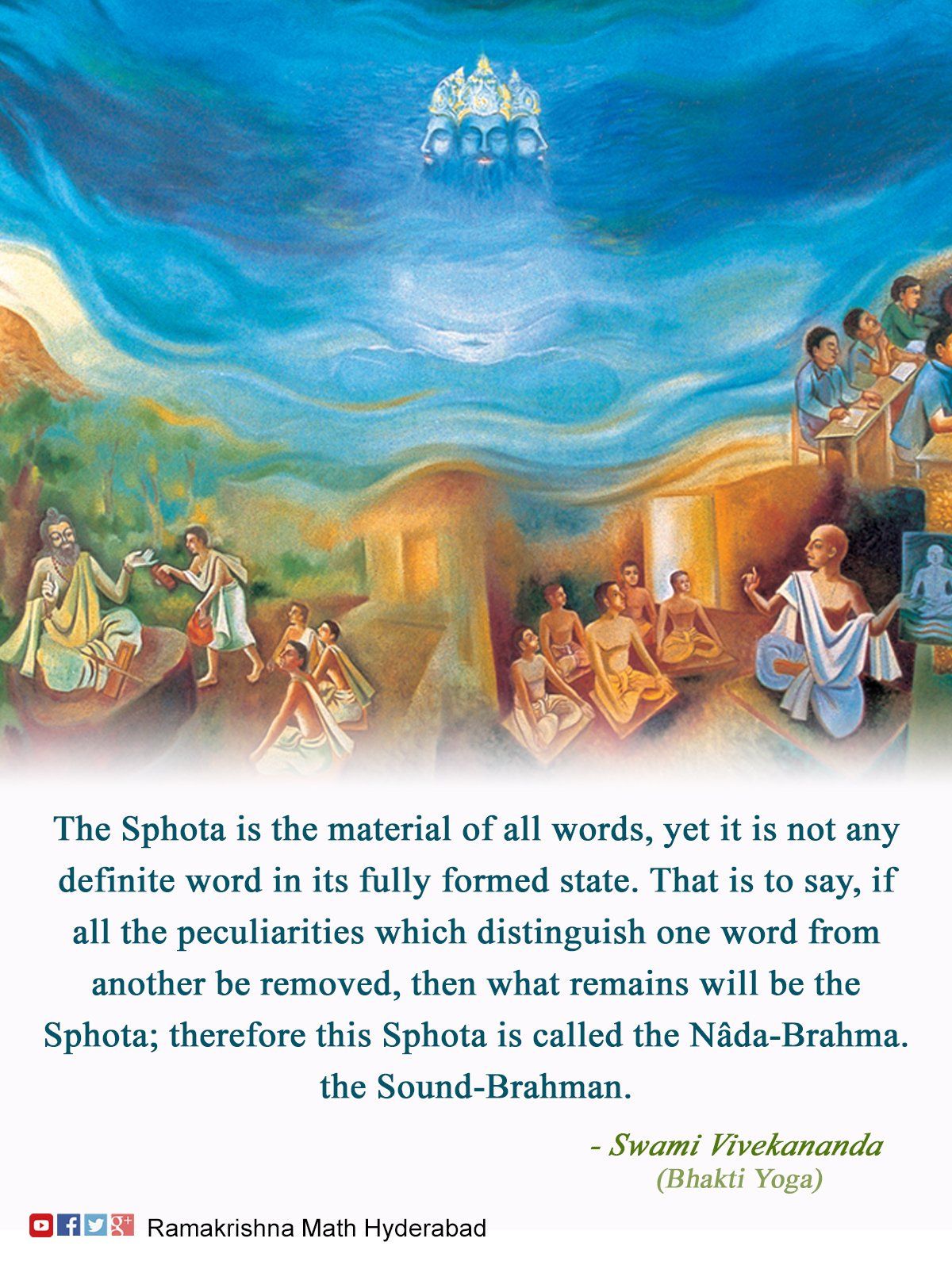 This Shabda Brahman, who has been taught as the One, appears as many due to the multiplicity of his powers, who, not different than his powers, seem to be so. (Vākyapadīya, 1:2)
